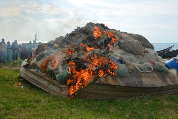 أوغندا: حرق معدات صيد غير قانونية بقيمة 3.9 مليون دولار في حملة لحماية الثروة السمكية